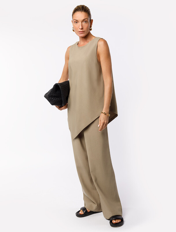 Брюки свободного кроя выполнены из плотного лиоцелла. Модель дополнена карманами и поясом с эластичной резинкой и регулируемым шнурком с золотистой фурнитурой. Ткань изделия отлично держит форму, плавно драпируется и не просвечивает. В теплое время года приятно охлаждает кожу. Добавление синтетических волокон в составе изделия, предотвращает сминаемостьи поддерживает формоустойчивость. Брюки сочетаются в костюме с топом D23.063, блузкой D29.266, D29.267 и жилетом D27.002