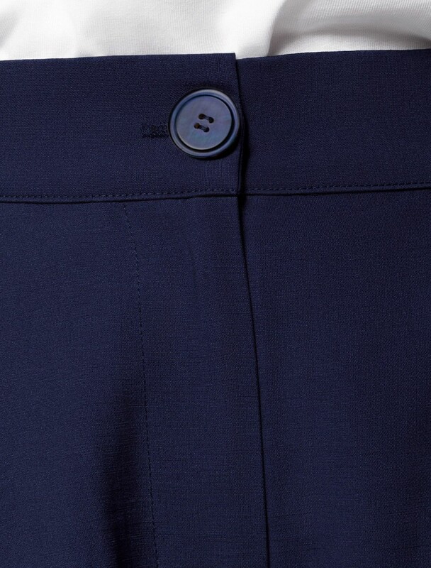 Брюки темно-синего цвета свободного кроя выполнены из плотного лиоцелла. Лиоцелл это более дорогой и экологичный вариант вискозы, очень прочный и шелковистый. Свободные прямые брюки с высокой посадкой визуально вытягивают силуэт и стройнят. Эластичный пояс на мягкой резинке гарантирует комфорт в талии и отлично сядет на любую фигуру. Удобные карманы по бокам и свободный крой делают эти брюки базовым элементом гардероба. Летние брюки отлично сочетаются с монохромным верхом, с ними можно создавать эффектные наряды как на выход, так и для ежедневных рабочих дел или простых прогулок, от делового шика до повседневного кэжуал.