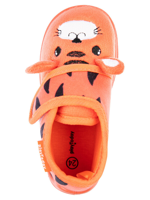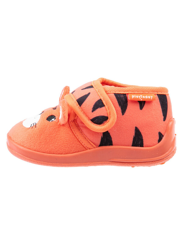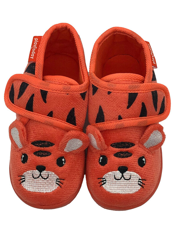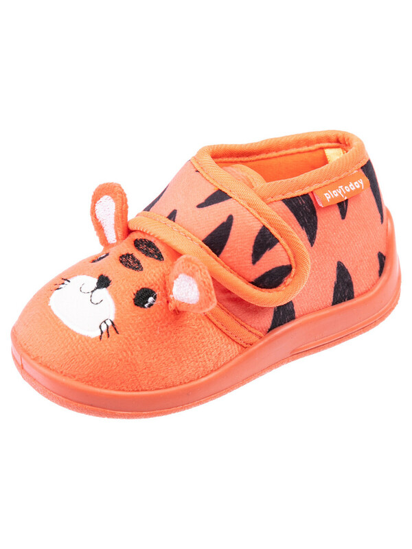 Верх тапочек выполнен из изностойкого текстиля с мягкой, приятной на ощупь поверхностью. Подкладка и стелька из трикотажа с высоким содержанием хлопка 95%.Противоскользящая подошва с защитой задней части. Конструкция с широкой липучкой позволяет легко обувать тапочки на малышей.