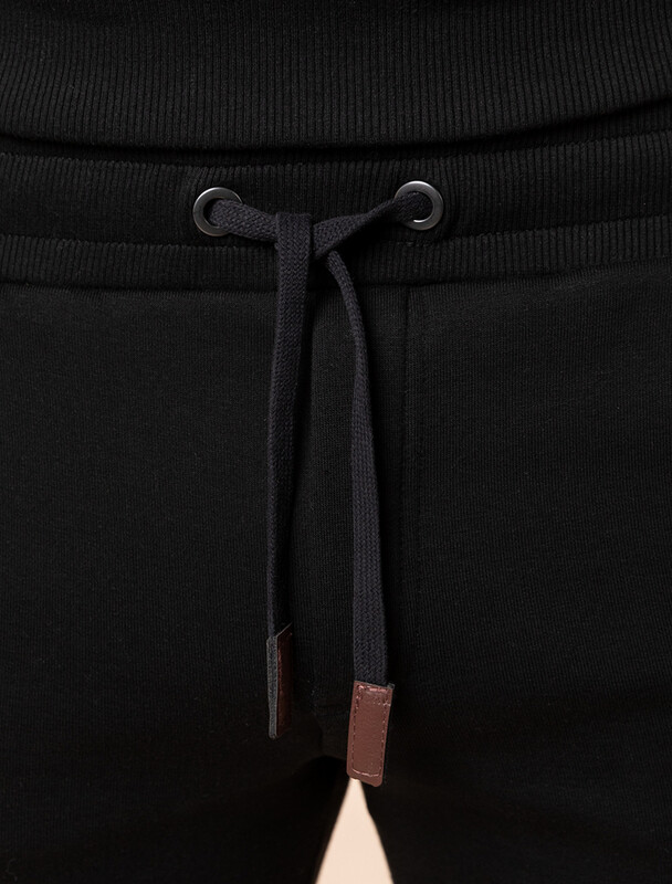 Теплые брюки-джоггеры выполнены из теплого футера-трехнитки с начесом. Эластичный пояс на резинке дополнительно регулируется хлопковым шнурком. Наличие эластана в составе изделия способствует формоустойчивости. Изделие украшено фирменным логотипом бренда из эко-кожи. Сочетайте в костюме с худи U49.022