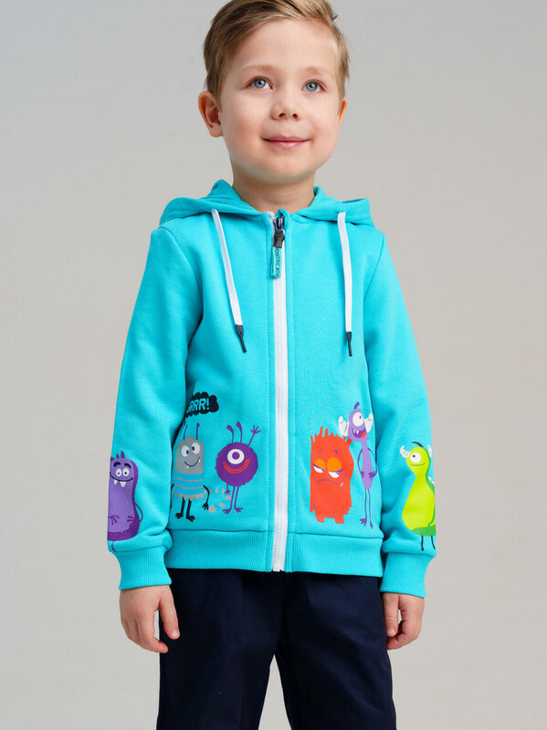 Толстовка детская для мальчика. Толстовка с высоким содержанием хлопка. Капюшон регулируется шнурком. Трикотажные манжеты. Застежка на молнию. Функциональные карманы.