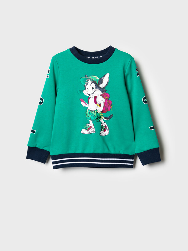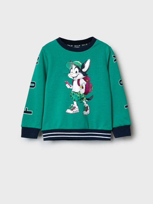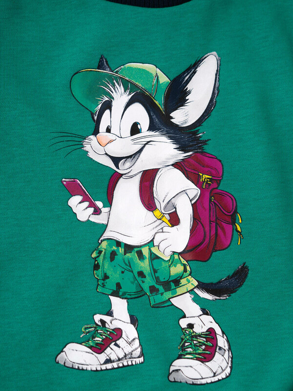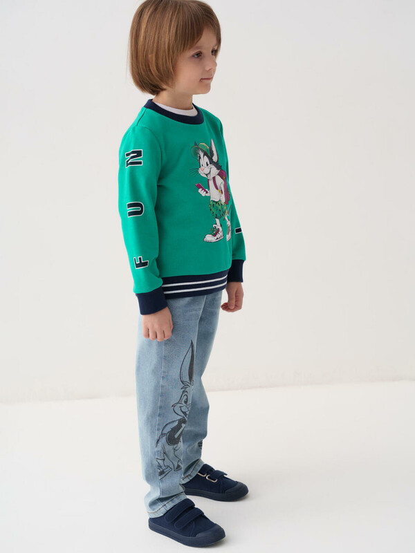 Детский свитшот для мальчика. Выполнен из хлопкового футера без начеса. Прямой крой. На груди и рукавах — красочный принт. Манжеты и низ изделия выполнены из эластичного риба, что обеспечивает комфортную посадку.