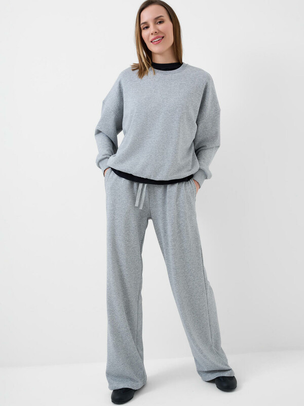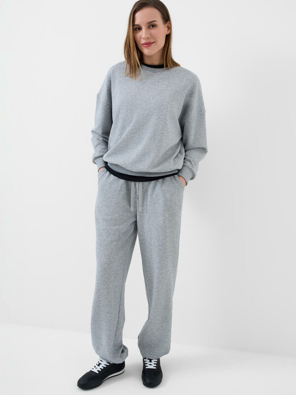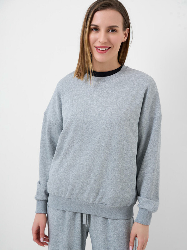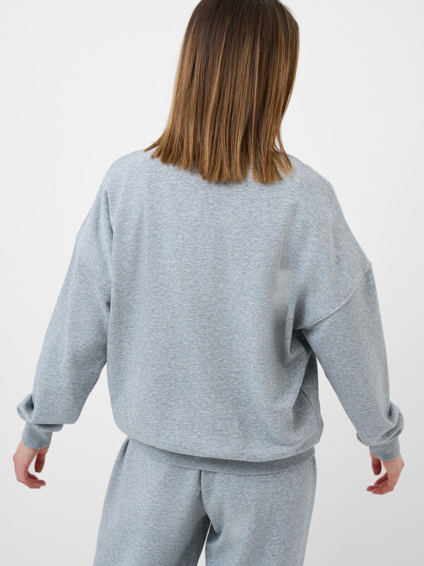 Женский серый свитшот оверсайз. Выполнен из хлопкового футера без начеса. Горловина, манжеты и низ изделия выполнены из эластичного риба, что обеспечивает комфортную посадку.