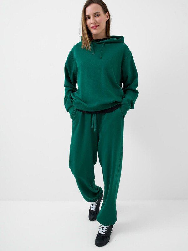 Женское худи оверсайз. Выполнена из хлопкового футера без начеса. Капюшон регулируется шнуром. Два боковых кармана. Низ изделия и рукава оформлены эластичными резинками.