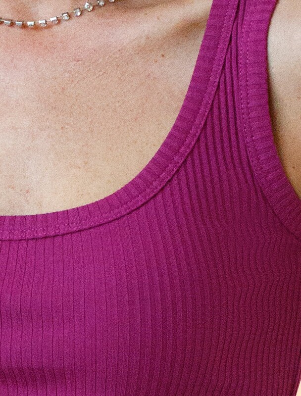 Топ выполнен из трикотажа в широкий рубчик. Эластичный хлопковый трикотаж идеально сидит по фигуре, не сковывает движений и очень комфортный в носке. Фактура вертикальных полос визуально стройнит и вытягивает силуэт. Базовое изделие хорошо впишется в любой гардероб. Идеально подходит для многослойных образов в базовый гардероб.