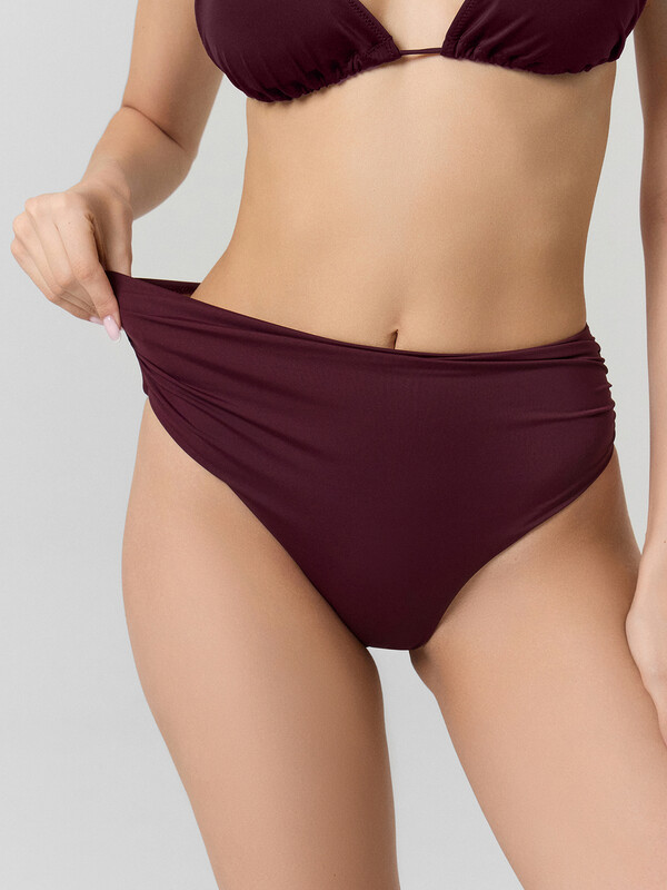 Трусы купальные макси с высокой линией талии из гладкой микрофибры на подкладке.