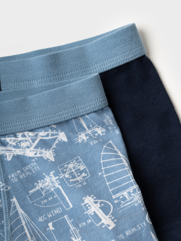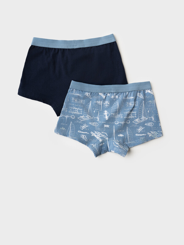 Набор из двух трусов-боксеров для мальчика подростка. Изделие плотно прилегает к телу, не имеет боковых швов, что делает его особенно комфортным. Эластичный пояс с логотипом бренда обеспечивает надёжную посадку. Материал — мягкий хлопковый трикотаж, приятный к телу.