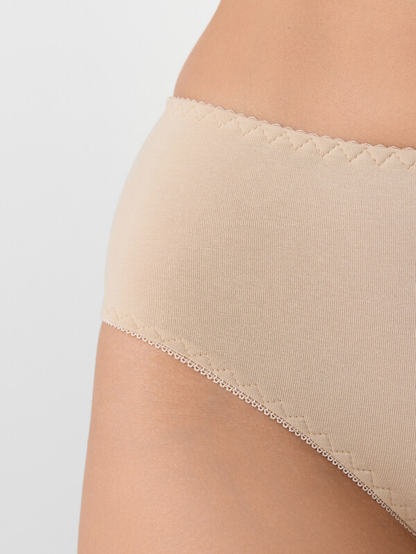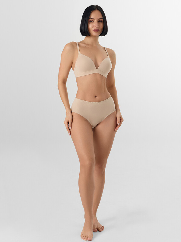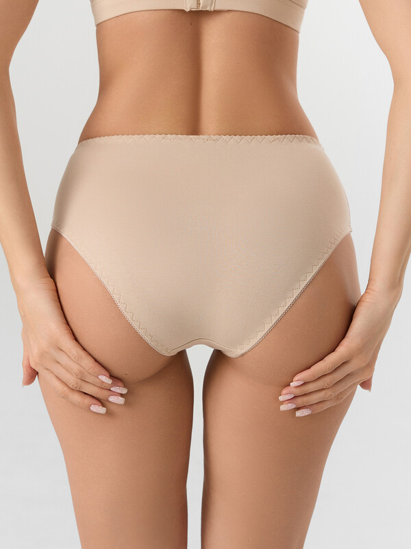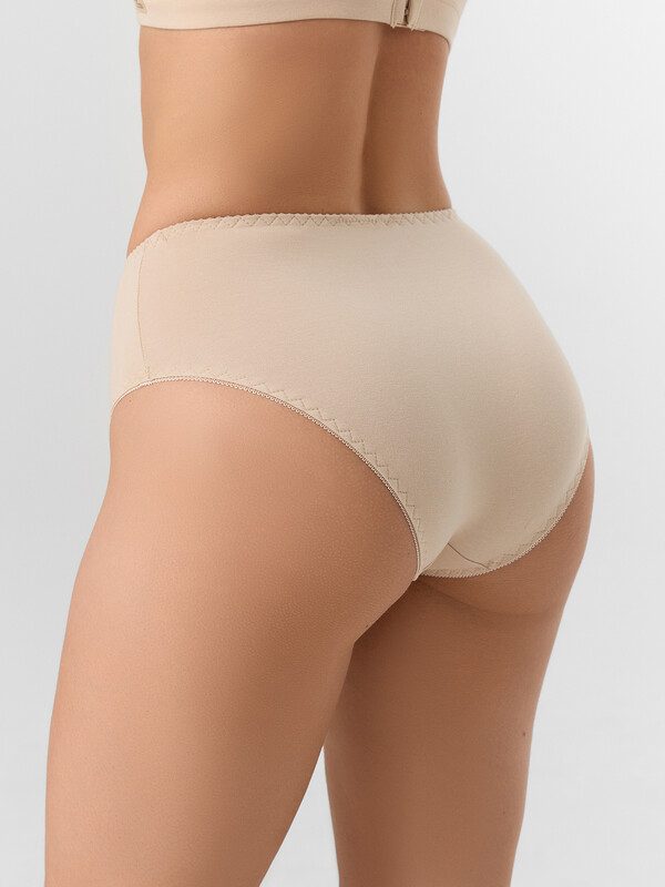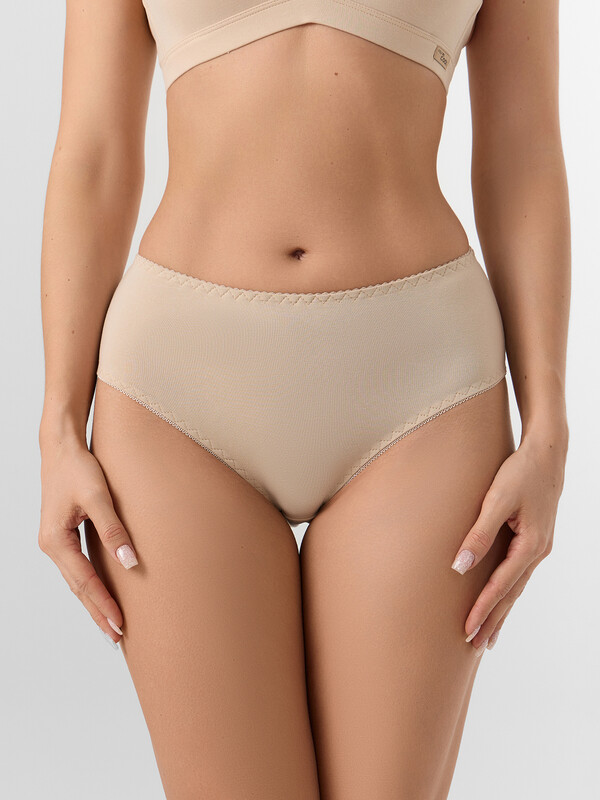 Трусы модели макси с высокой посадкой полностью закрывают линию бедер и обеспечивают надежную посадку. Эластичный пояс и деликатная отделка по краям гарантируют удобное прилегание, не сдавливая и не натирая кожу. Плоские швы делают модель практически незаметной под одеждой.