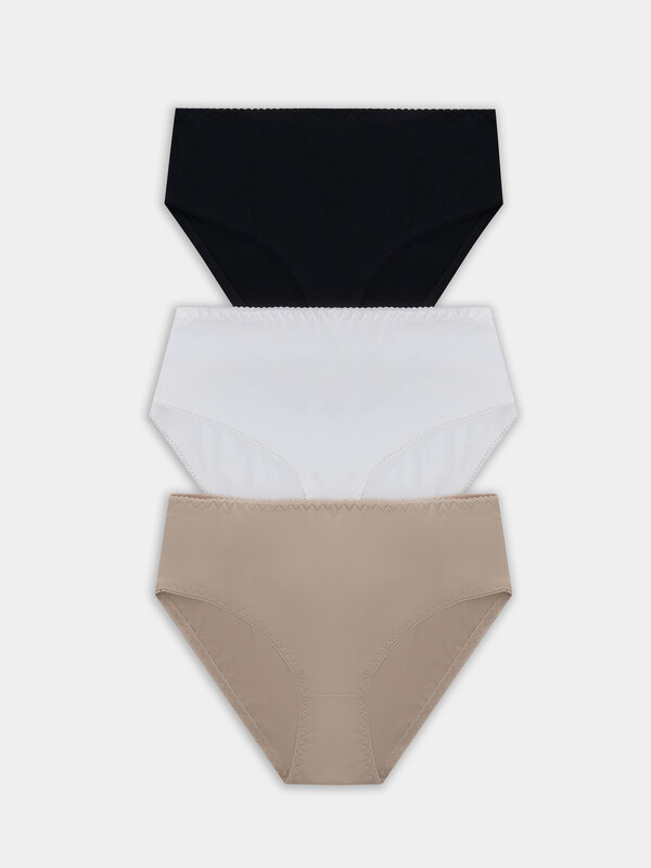 Набор женских трусов макси, 3 шт. — это практичное и удобное решение для ежедневной носки. В набор входят три пары базовых цветов. Они выполнены из мягкого хлопка с добавлением эластана.