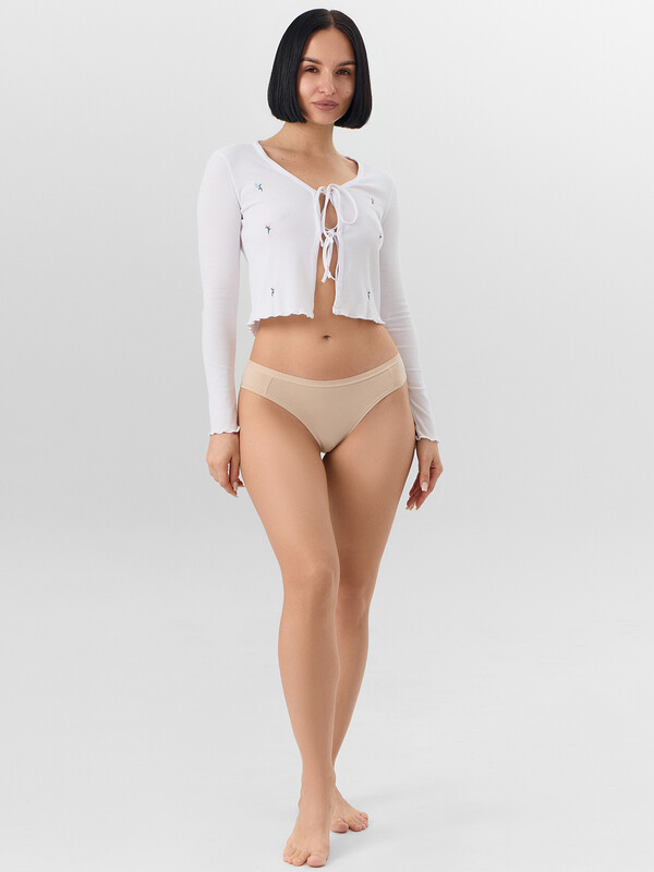 Состав из хлопка и эластана дарит коже гипоаллергенность и ощущение нежности на протяжении дня. Бразилиана мягко поддерживают ягодицы, придавая им округлый и подтянутый вид, и подчеркивают достоинства вашей фигуры. Эта модель напоминает стринги, но с более широкой задней частью — так сохраняется вся легкость, но добавляется удобство.