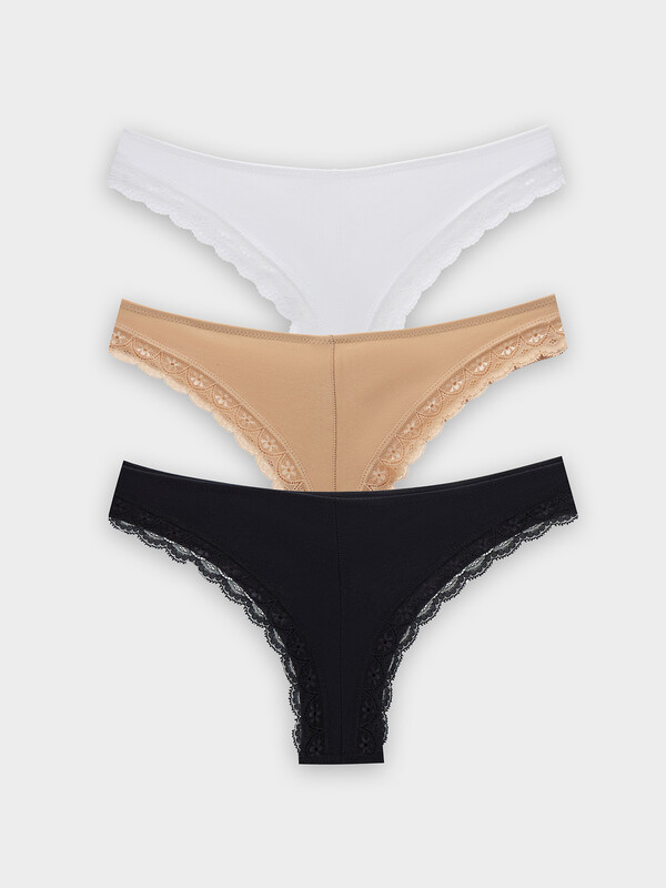 Стильный набор женских трусиков бразилиана (3 шт.) разных цветов из высококачественного хлопка с кружевными деталями. Невероятно удобные, благодаря своей невысокой посадке, они пользуются заслуженной любовью покупательниц. Изготовлены из натурального материала, дышащего, мягкого, гипоаллергенного - идеального для повседневной носки. Продуманная анатомичная конструкция, плоские швы и деликатные резиночки делают эту модель подходящей для занятий спортом, можно использовать её как спортивное бельё, а также, оно идеально для ежедневной носки. Пригодятся трусы бразилиана и будущим мамам: талия трусиков удобно помещается под растущим животиком и абсолютно не давит. Отлично тянутся, хорошо пропускают воздух и не создают парникового эффекта. Размерный ряд широкий, красивые базовые цвета и модели с принтами - никого не оставят равнодушными. Милый дизайн радует глаз, а дополнить такие трусики легко шикарным верхом из линейки нижнего женского белья. Порадуйте себя и близких красивым женским бельем на праздники и просто без повода!
