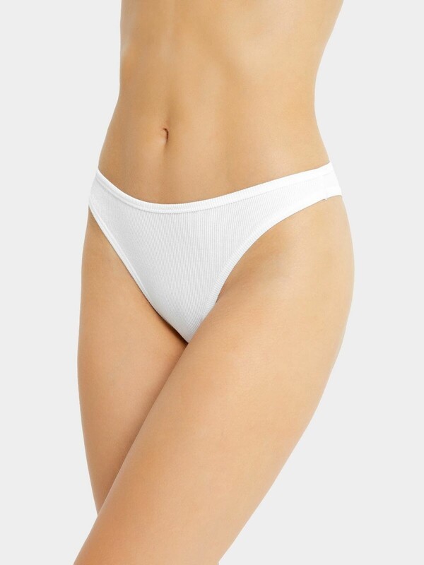 Стильный и лаконичные трусики бразилиана из нежного и гипоаллергенного хлопкового полотна. Линия талии высокая. Верхний и нижние срезы обработаны окантовкой из основного полотна. Особый шарм белью придает фактура в рубчик.