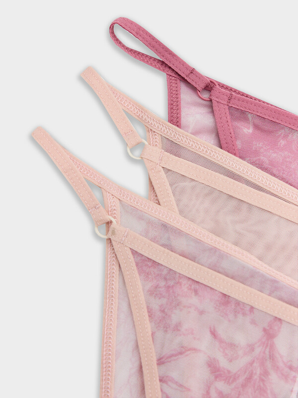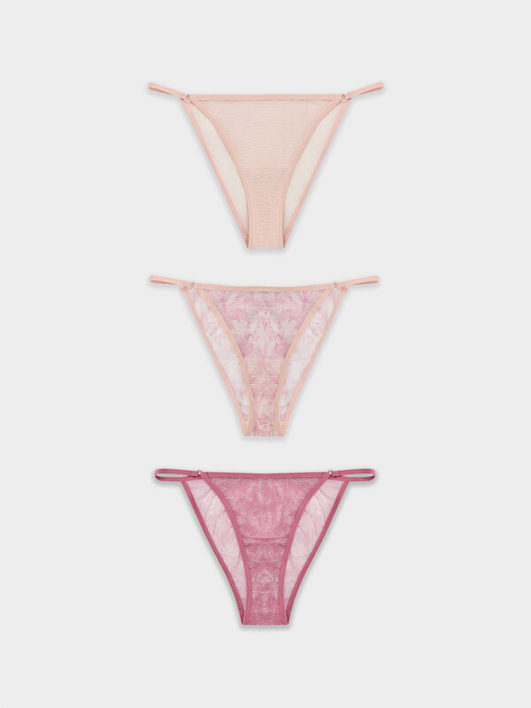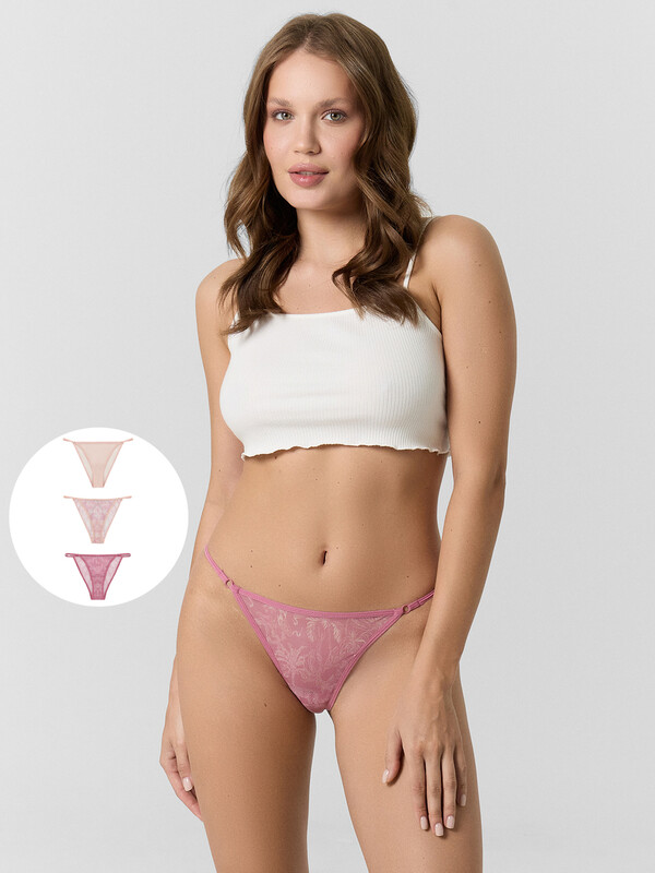 Трусы женские, средняя линия талии, силуэт - слипы. Передняя и задняя детали выполнены из сетки. Подкладка ластовицы из хлопка, отлетная по верхнему срезу. Верхний срез трусов обработан ловаблем. Нижние срезы трусов обработаны ловаблем. Колечки.