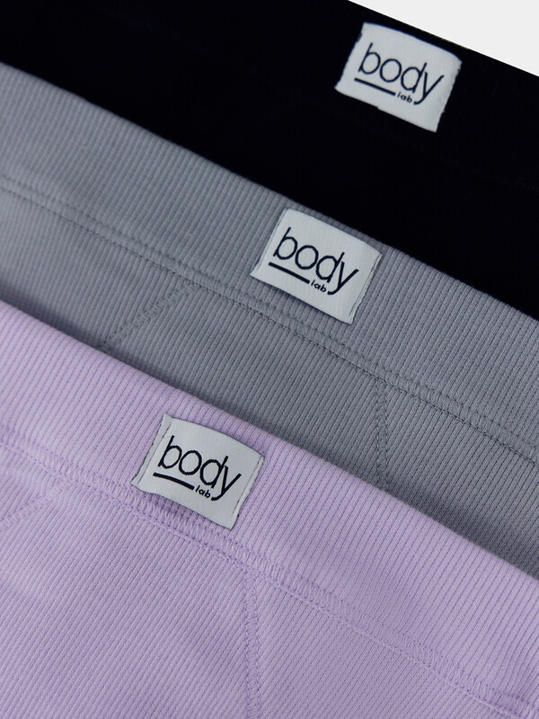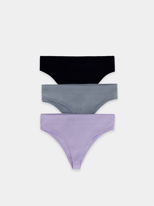 Трусы женские, средняя линия талии, силуэт - бразилиано. Передняя и задняя детали выполнены из рибаны. Верхний срез трусов обработан бейкой поперечной из рибаны, внутри жилка 6мм. Нижние срезы обработаны бейками поперечными из рибаны. Подкладка ластовицы из хлопка, верхний срез ластовицы притачан к детали из рибаны (с изнаночной стороны имитация мужского гульфика, с лицевой стороны декоративные строчки).