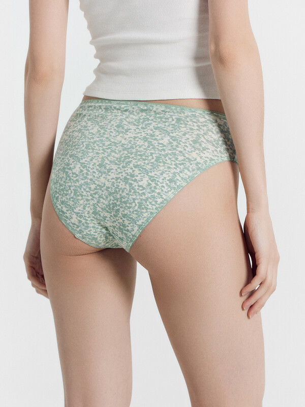 Трусы женские, средняя линия талии, силуэт - классика. Передняя и задняя детали выполнены из хлопка. Верхний срез трусов обработан тесьмой с зубом 10мм (рабочая зона 8мм), нижние срезы обработаны тесьмой с зубом 8мм (рабочая зона 6мм). Подкладка ластовицы из хлопка, отлетная по верхнему срезу.