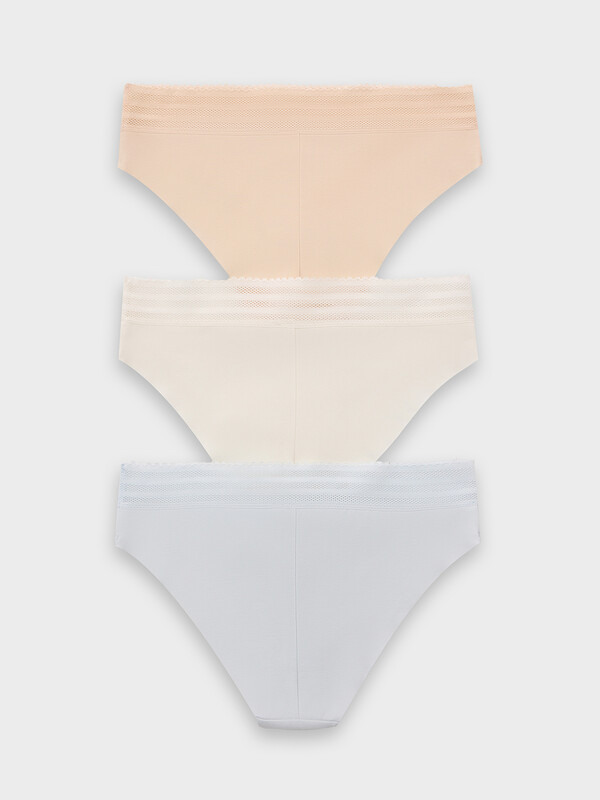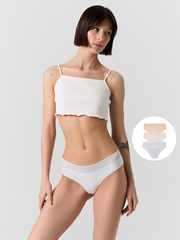 Трусы женские классического силуэта со средней посадкой из интерлока. Передняя деталь цельная. Ластовица цельная на подкладке из кулирного полотна, отлетная по переднему краю, обтачная по боковым срезам
