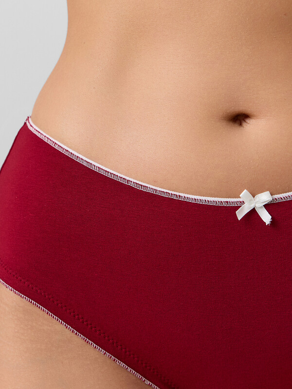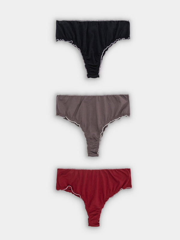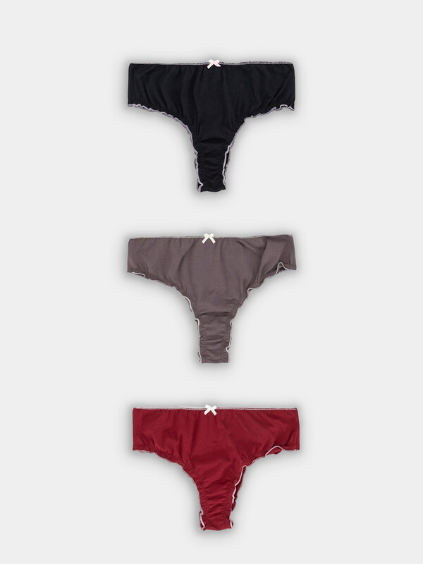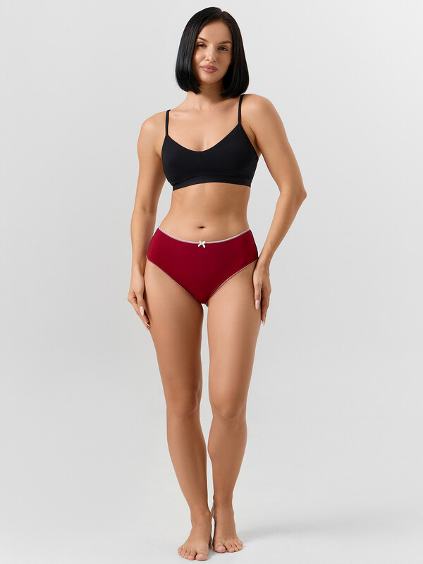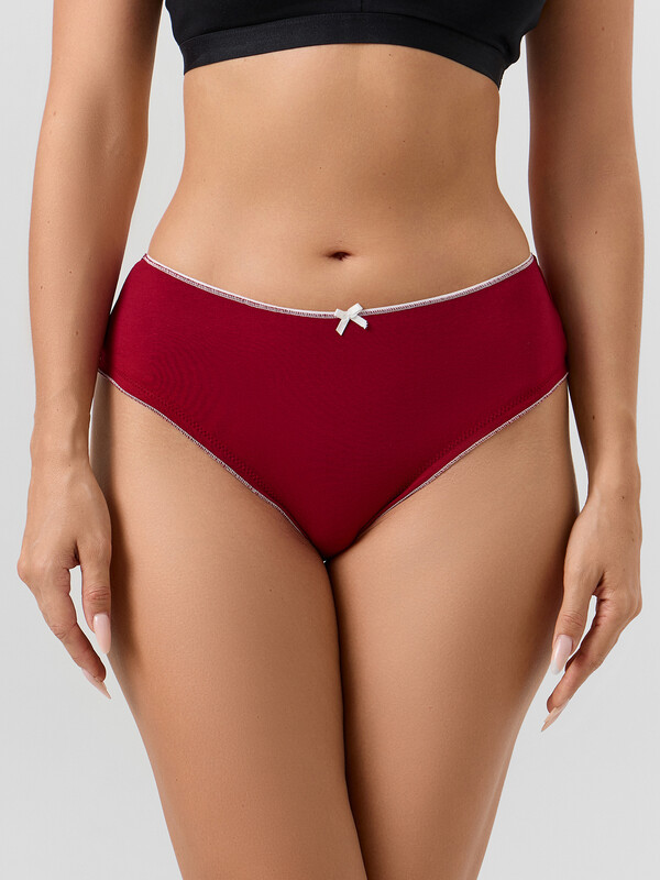 Трусы женские, средняя линия талии, силуэт - бразилиана, выполнены из трикотажного кулирного полотна. Передняя и задняя детали цельные. Подкладка ластовицы из основного полотна, отлетная по верхнему срезу.