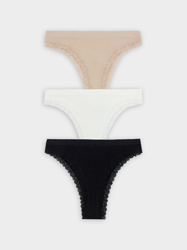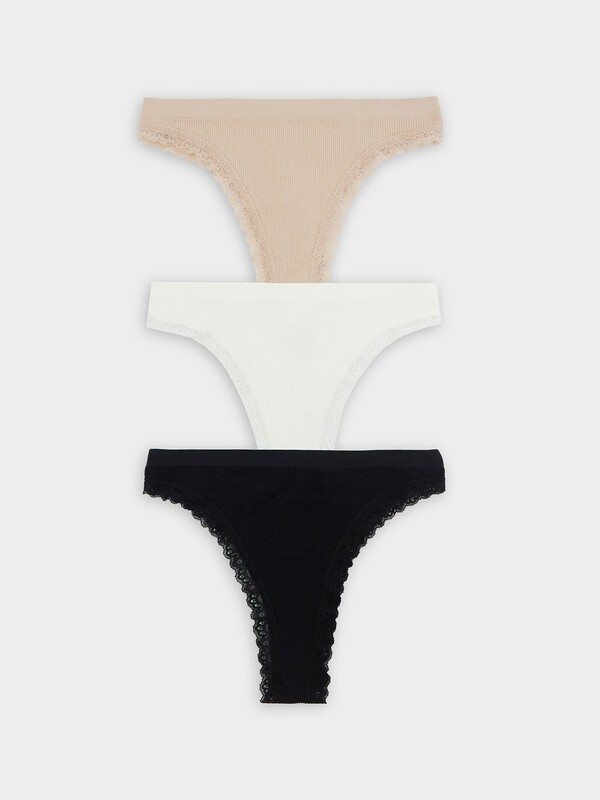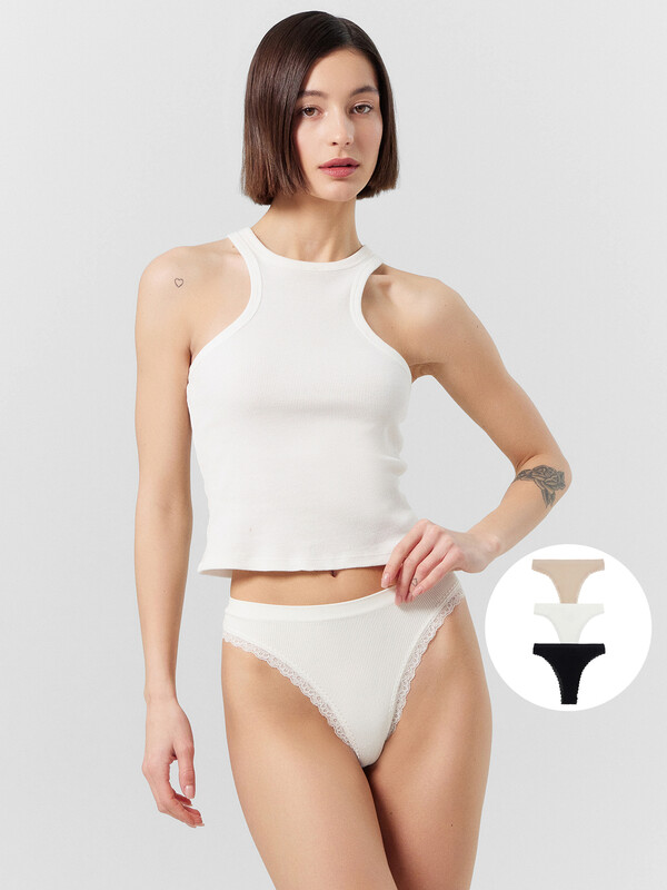 Набор женских трусиков-бразилиана - это идеальное дополнение к вашему гардеробу. Модели с эластичной талией и высокой посадкой обеспечивают комфорт и стиль. Материал с фактурой в рубчик добавляет интересный визуальный эффект, а нежное кружево по краю придает изящный и утонченный вид. Эти трусики станут вашим любимым выбором для создания элегантных и комфортных образов каждый день.