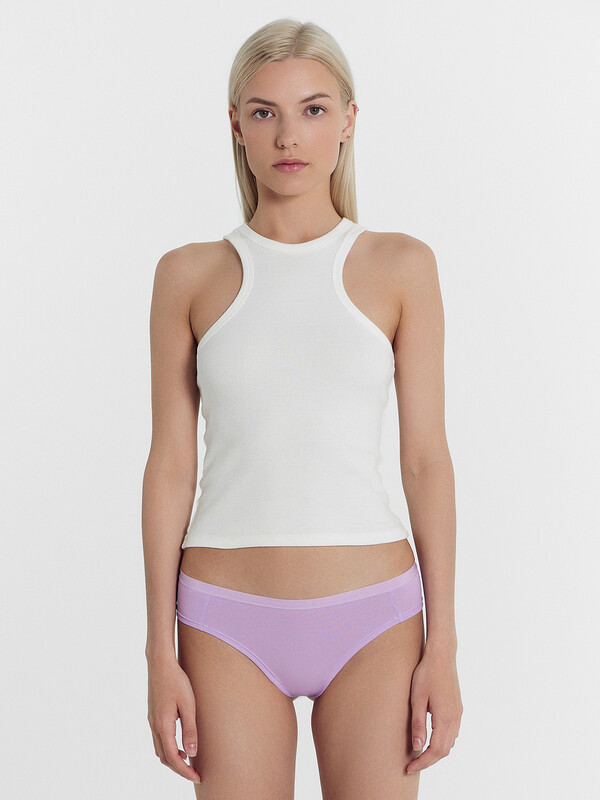 Хлопковые трусики-бразилиана из натурального, гипоаллергенного, дышащего полотна. Линия талии занижена. На верхнем срезе – тонкая эластичная тесьма, по ножкам – шов вподгибку. Почти не заметны под одеждой!