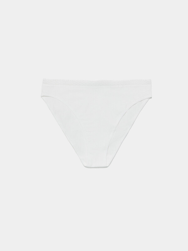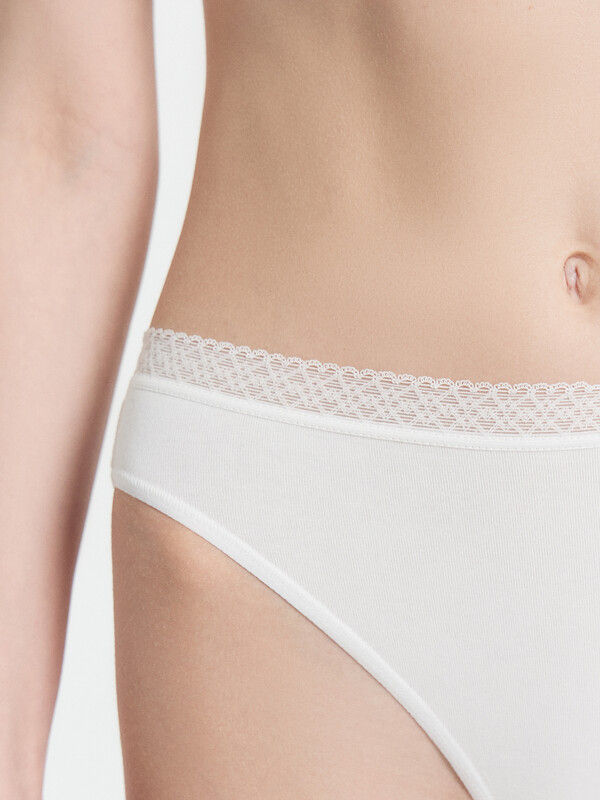 Слип-бикини из натурального хлопкового полотна – гипоаллергенного и приятного на ощупь. Линия талии завышена, бедра открыты. Верхний срез обработан декоративной тесьмой, по ножкам – жилка. Базовая расцветка!