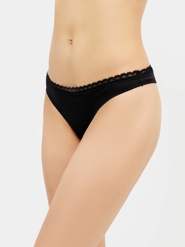 Стильные трусики бразилиана с классической линией талии. По верхнему срезу проходит узкое кружево и тесьма. Отличные трусики для повседневной носки – рекомендуем!