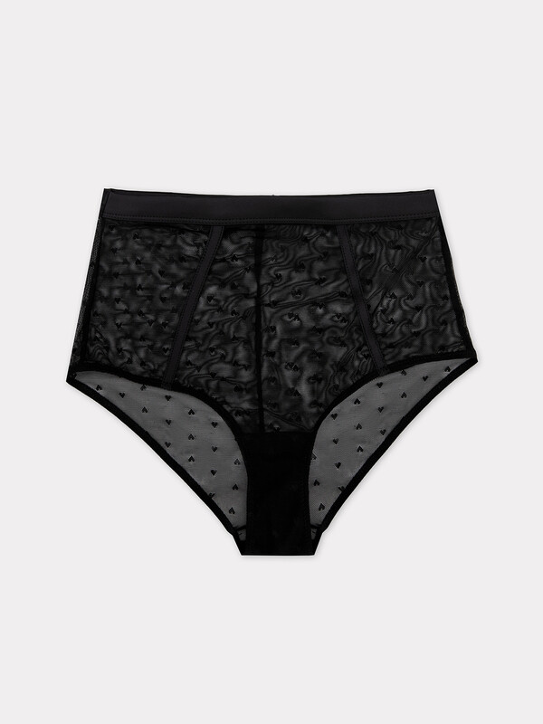 Трусы женские высокая линия талии, силуэт - макси. Трусы выполнены из кружевного полотна, отделка - ткань. Верхний срез окантован бейкой, с внутр. тесьмой. Нижние срезы обработаны жилкой. Декоративные элементы - обтачки по передней детали из ткани. Верхний срез ластовицы отлетной.
