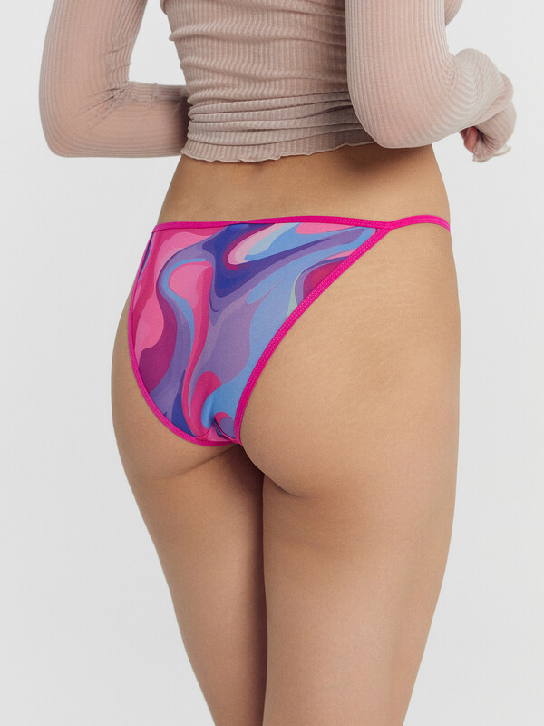 Интригующие женские бразилиана с классической линей талии. Трусики выполнены из ультралегкого полупрозрачного сетчатого полотна. Срезы бразилиана обработаны тесьмой. Изюминкой трусиков являются вырезы в боковых частях. Очаровательно!