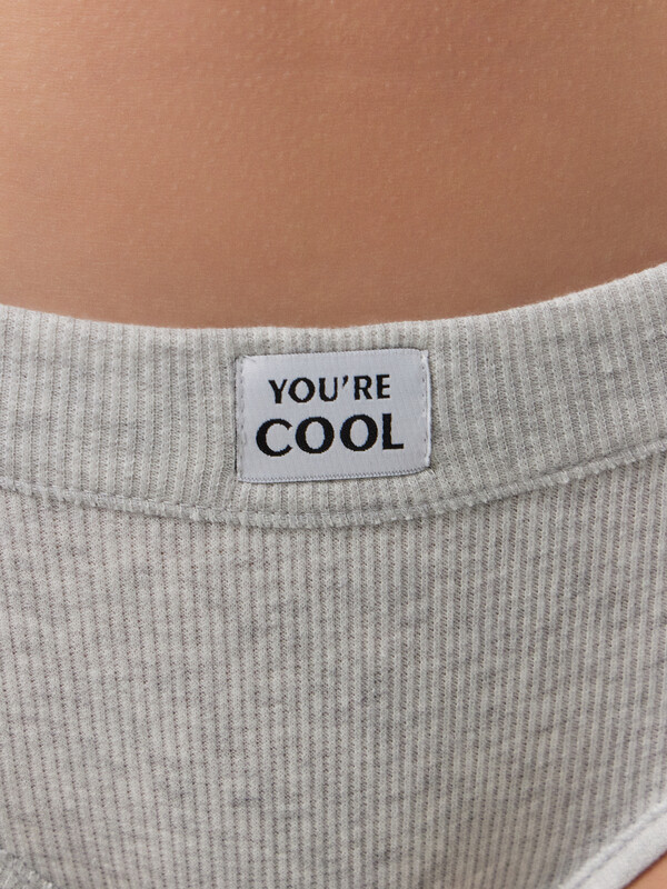 Трусы женские, средняя линия талии, силуэт - слипы. Передняя и задняя детали выполнены из рибаны. Верхний срез трусов обработан бейкой поперечной из рибаны, внутри жилка 6мм. Нижние срезы обработаны бейками поперечными из рибаны. Подкладка ластовицы из хлопка, отлетная по верхнему срезу.