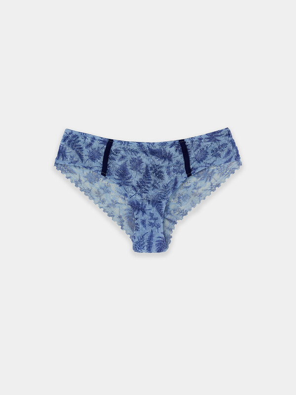 Трусы женские, средняя линия талии, силуэт - слипы. Передняя деталь выполнена из кружева. Ластовица из кружева на подкладке из хлопка. Задние детали выполнены из кружева. По верхнему срезу трусов жилка. По нижним срезам передней детали жилка. На передней детали декоративные обтачки из ткани.