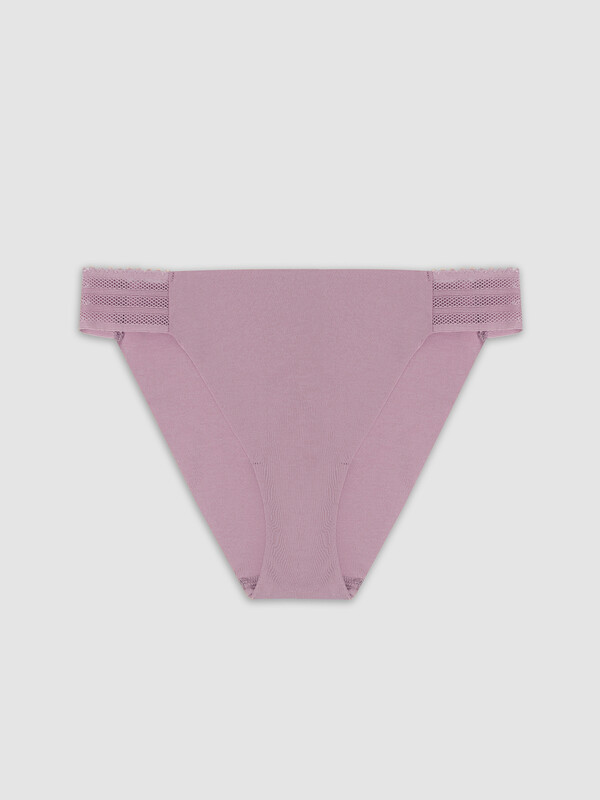 Боковые стороны трусов оформлены декоративной эластичной тесьмой, которая заменяет традиционные швы — это исключает натирание и делает модель невидимой даже под обтягивающей одеждой.