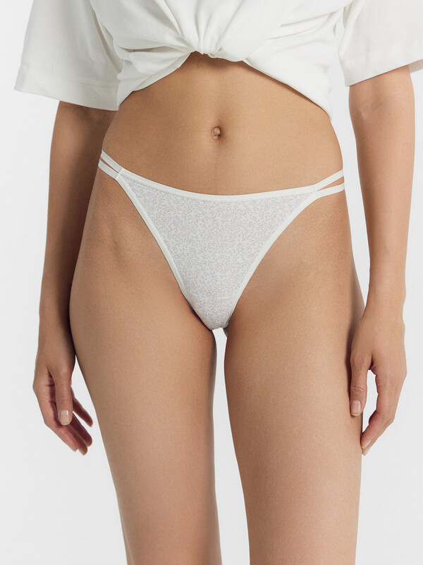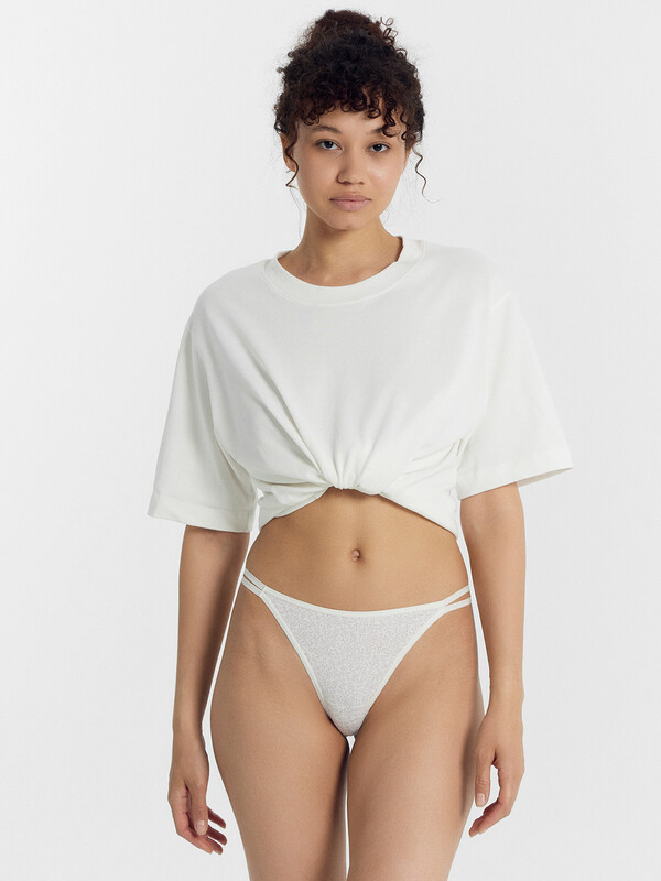 Трусы женские силуэт бразилиано со средней посадкой из кулирного полотна с протяжками по бокам.