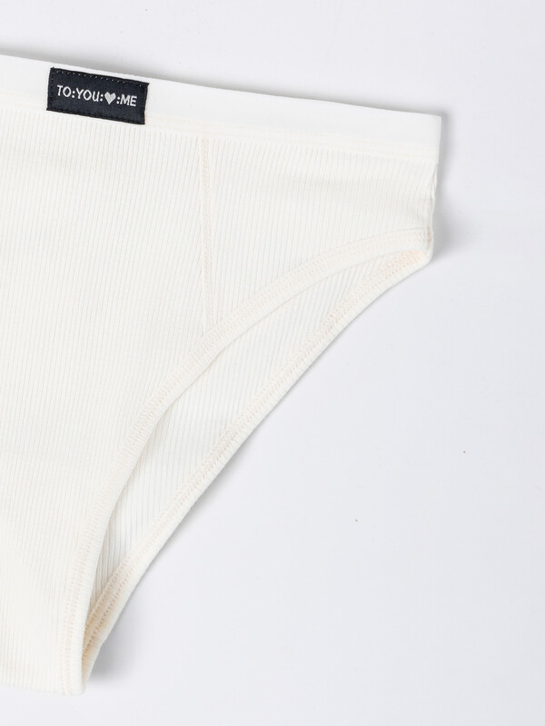 Трусы женские со средней линией талии силуэта «слип» из трикотажного полотна рибана. Передняя деталь с рельефами, по которым проложены декоративные строчки. Ластовица из кулирной глади отлетная по переднему срезу.