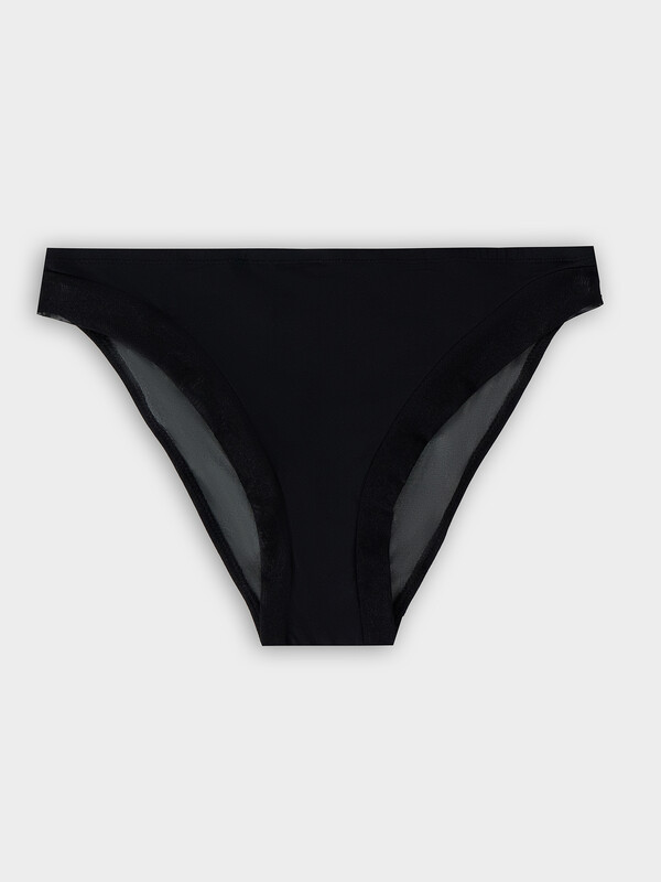 Трусы женские со средней посадкой силуэта «слип». Передняя центральная деталь из микрофибры, боковые передние детали из эластичной сетки, со сгибом по ножкам. Подкладка ластовицы из кулирного полотна отлетная по переднему краю.