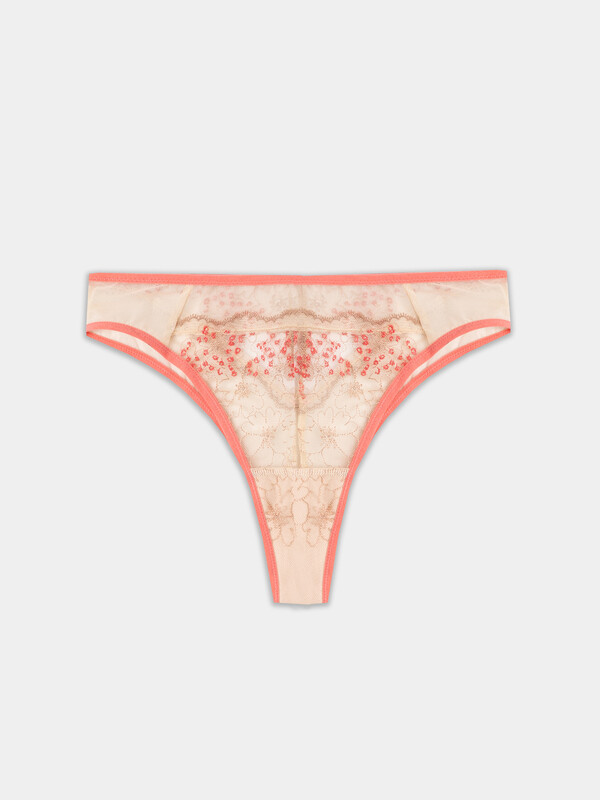 Задняя деталь из кружевного полотна со средним швом. Верхний и нижние срезы трусов обработаны ловаблем 15 мм (ловабль 794W, F1-15).