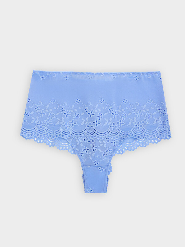 Трусы женские, силуэт бразилиана, из кружева эластичного, с высокой посадкой. Передняя деталь и ластовица из кружева. Ластовица отрезная. Подкладка ластовицы из кулирного полотна