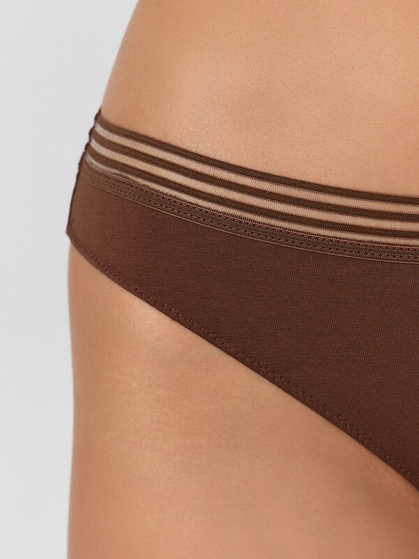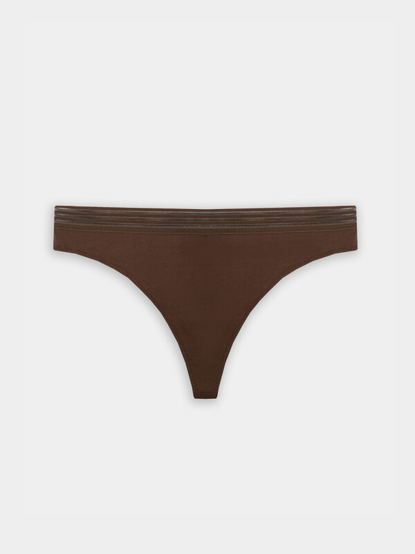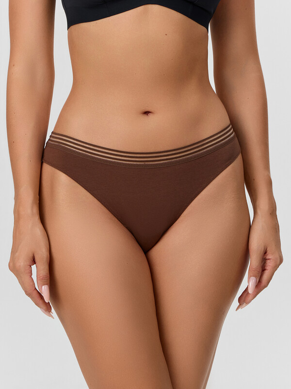 Если вы рассматриваете возможность купить женские стринги, эта модель станет отличным выбором. Их можно носить под облегающей одеждой - благодаря средней посадке они остаются незаметными, обеспечивая при этом полный комфорт, а нежный кофейный оттенок легко сочетается с разными элементами гардероба.
