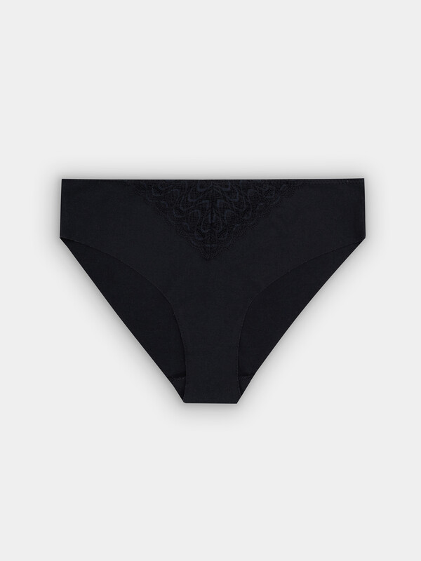 Женские бесшовные трусы сочетают в себе современные технологии и элегантный дизайн. Модель отличается особой конструкцией, обеспечивающей идеально гладкую поверхность без внутренних швов. Передняя часть украшена нежным эластичным кружевом, которое добавляет образу женственности, не нарушая комфорта. Эластичная резинка по талии мягко фиксирует изделие, не оставляя следов на коже. Ластовица с подкладкой из основного материала гарантирует гигиеничность и поддерживает естественный баланс кожи в течение дня.