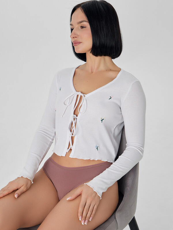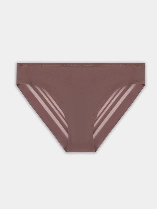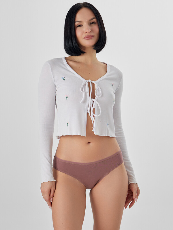 Трусы женские, силуэт - слипы, выполнены из трикотажного кулирного полотна+кружево. Передняя, задние верхние детали и подкладка ластовицы выполнены из кулирного полотна. Срезы по ножкам на детали переда обработаны на плоскошовной машине. Задние детали декорированы широким кружевом, по центру шов. Верхний срез трусов обработан эл. тесьмой 6мм (жилко й WT4, Девсел арт 13460W) на плоскошовной машине с верхним застилом.