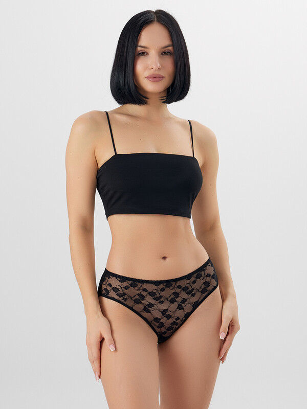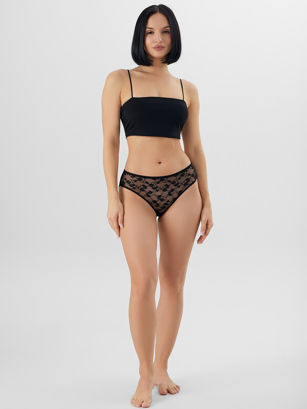 Трусы женские, силуэт классика, передняя деталь выполнены из кружевного полотна. Задняя деталь с средним швом, выполнена из кружева 22см. Подкладка ластовицы из кулирного полотна, отлетная по верхнему срезу. Верхний срез обработан эл тесьмой 8мм( с зубом KTE5-8 Arteks E2699 ) на плоскошовной машине с верхним застилом нитка №90. По ножкам передней детали эл тесьма 6мм (жилка Wt4-6, девсел 13460W) обработана на плоскошовной машине с верхним застилом ниткой №90