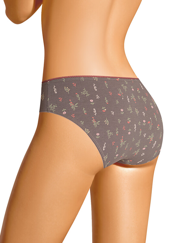 Трусы бикини женские из эластичного хлопкового полотна. Обработка краев по талии - ажурная резинка, по ноге - полуокантовка.