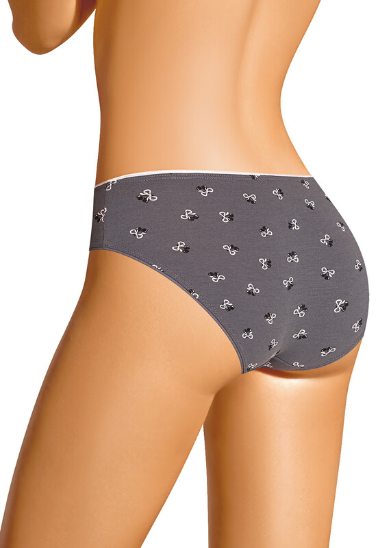 Трусы бикини женские из эластичного хлопкового полотна. Обработка краев по талии и ноге - резинка с кантом. По переду вставки из узкого кружева, атласный бант.