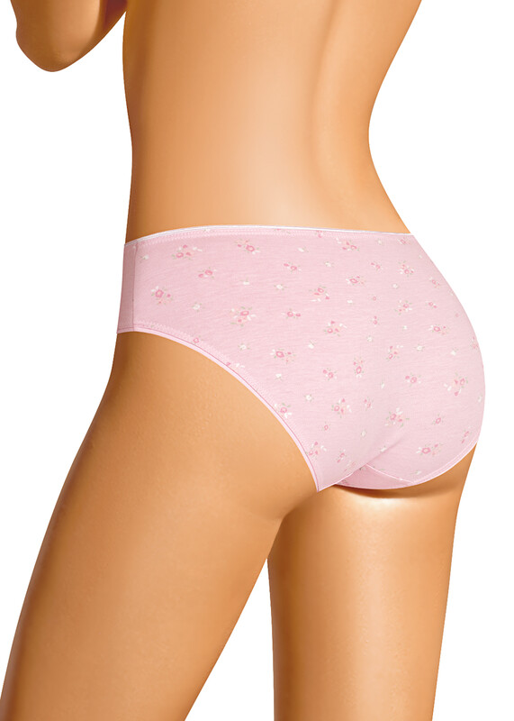 Трусы бикини женские из эластичного хлопкового полотна. Обработка краев по талии и ноге - резинка с кантом. По переду вставки из узкого кружева, атласный бант.
