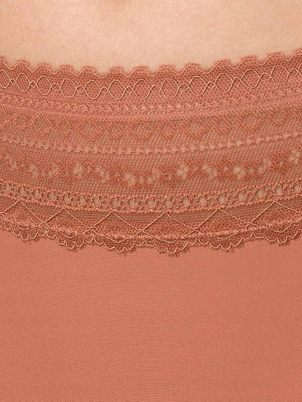 Женские трусы-шорты с высокой посадкой. Изготовлены по бесшовной технологии с минимум швов. Кромки по ноге и по талии подогнуты и приклеены, хлопковая приклеенная ластовица. Нежное геометричное кружево по линии талии высотой 5 см – не передавливает тело и не натирает кожу. Модель оценят те, кто ищет незаметное и невесомое белье на каждый день или особого случая.