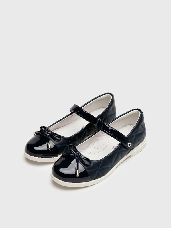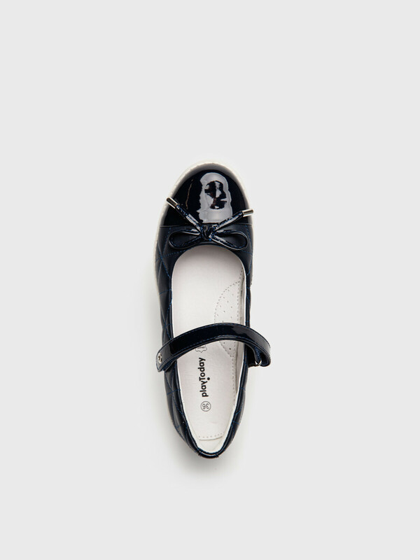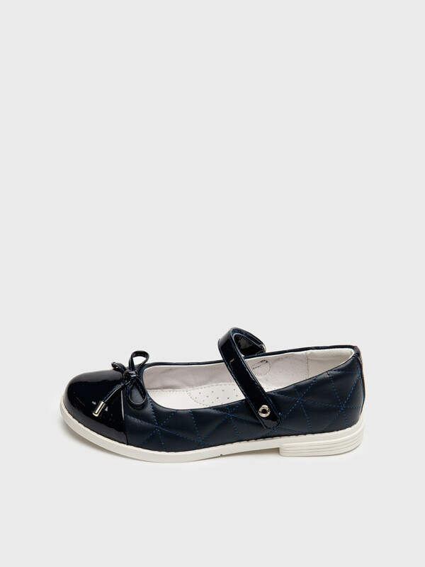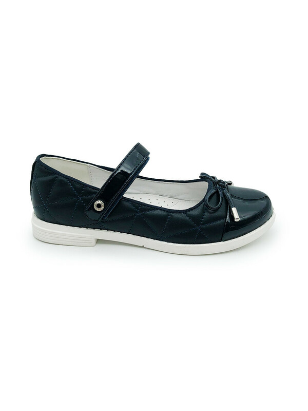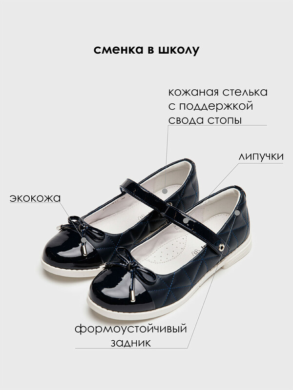 Школьные туфли для девочки подростка. Туфли выполнены из мягкой искусственной кожи с прострочкой. Носочная часть и чересподъемный ремень - из лаковой искусственной кожи, белая подошва. Декорированы бантиком с металлическими наконечниками. Возвратный чересподъемный ремень на липучке дает возможность регулировать обувь на любой подъем. Подкладка выполнена из 100% натуральная кожа. Кожаная стелька с анатомическим элементом обеспечивает правильную нагрузку на стопу. Формоустойчивый задник поддерживает стопу в правильном положении. Подошва легкая и гибкая. Туфли для девочки школьницы отлично подойдут как сменка в школу , а также для прогулок: весна, лето, ранняя осень.