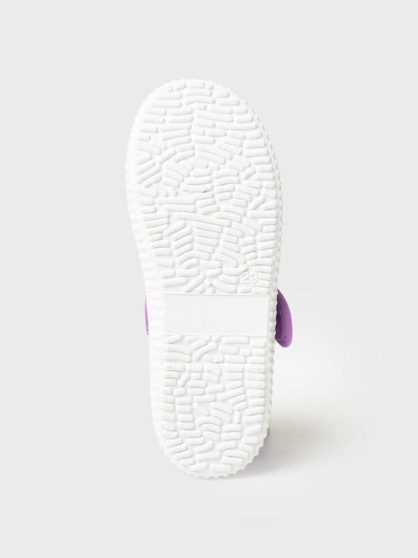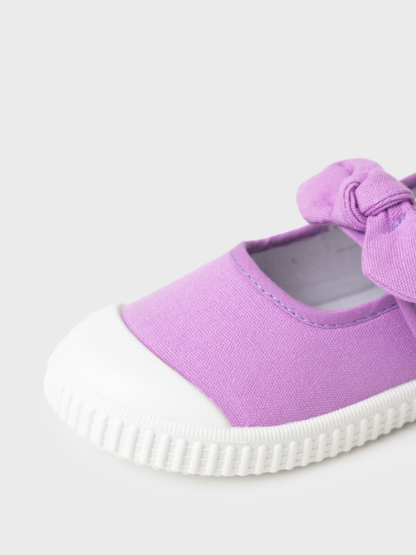 Текстильные туфли для девочки. Спереди на липучке имеется милейший бантик. В обуви используется текстильная 100% хлопковая подкладка, которая обладает высокой гигроскопичностью. Съемная мягкая текстильная стелька выполнена из 100% хлопка. Облегченная подошва из ПВХ гибкая, не скользит и устойчива к истиранию.