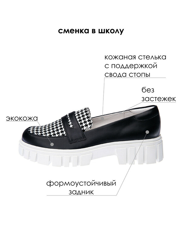 Модные лоферы для девочки подростка. Туфли из искусственной кожи. Подкладка - 100% натуральная кожа. Кожаная стелька с анатомическим элементом обеспечивает правильную нагрузку на стопу школьницы. Формоустойчивый задник поддерживает стопу в правильном положении. Подошва не скользит и устойчива к истиранию. Туфли для девочки школьницы отлично подойдут как сменка в школу и как обувь для прогулок: весна, лето. осень.