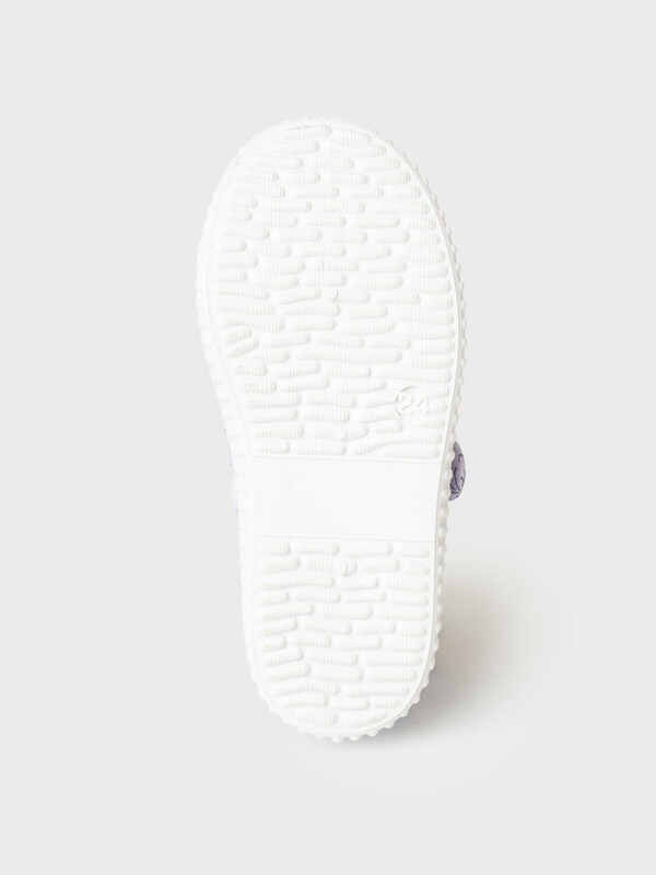 Текстильные туфли для девочки. Туфли выполнены в стиле Прованс. Удобная возвратная липучка позволяет ребенку обуваться самостоятельно. В обуви используется текстильная 100% хлопковая подкладка, которая обладает высокой гигроскопичностью. Съемная стелька из свиной натуральной кожи имеет анатомический элемент для поддержания свода стопы. Облегченная подошва из ПВХ гибкая, не скользит и устойчива к истиранию.
