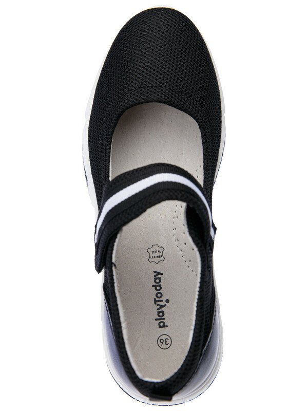 Классические черные школьные туфли из искусственной кожи и сетки для девочки подростка от PlayToday — идеальный вариант сменной обуви в школу. Лёгкие, дышащие и комфортные, они подойдут как для учебных занятий, так и для прогулок в тёплое время года.