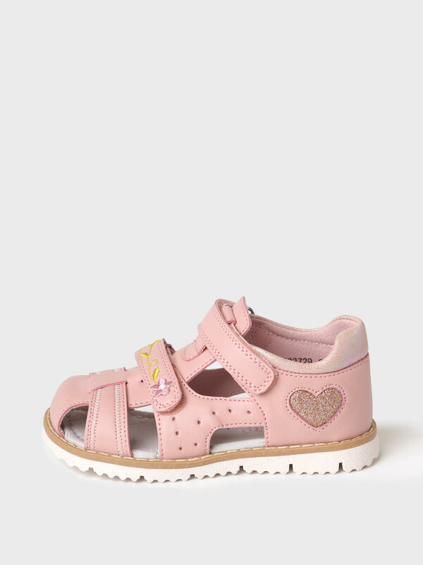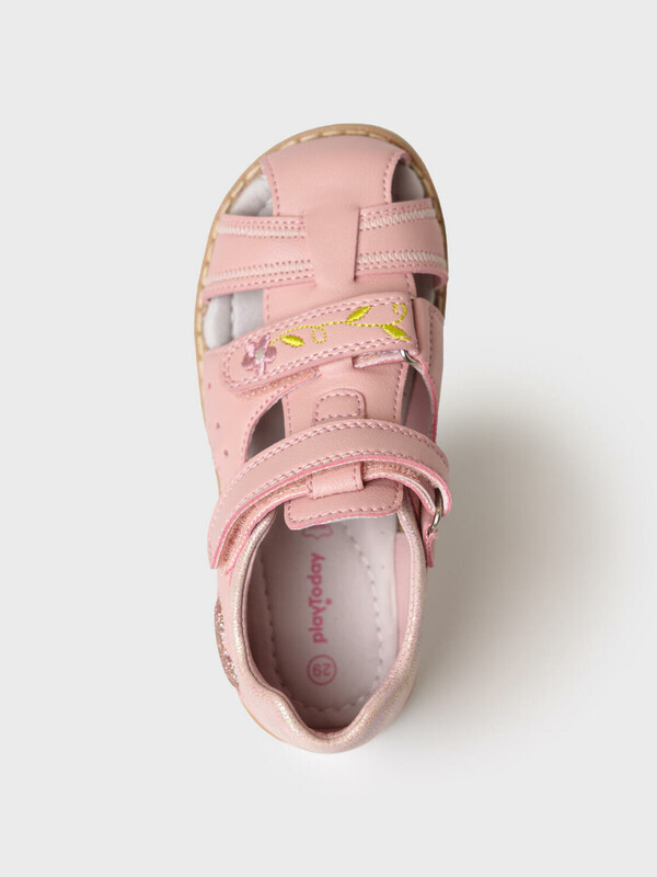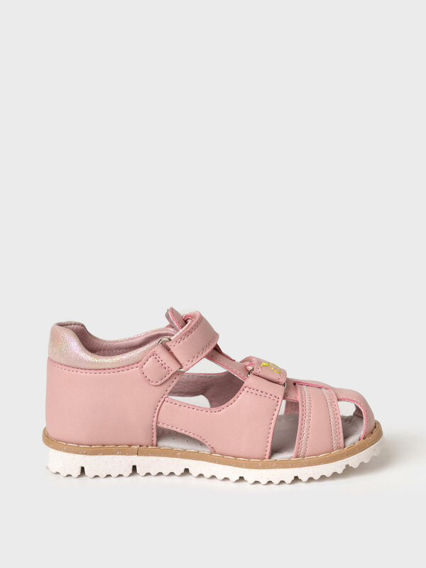 Сандалии для девочки с закрытой носочной и пяточной частью выполнены из искусственной кожи Удобные ремни с липучкой позволяют регулировать обувь на любой подъем и позволяют ребенку обуваться самостоятельно. Подкладка и стелька выполнены из натуральной кожи. Стелька имеет анатомический элемент для поддержания свода стопы в правильном положении. Подошва из ТПР легкая, гибкая и нескользкая. Парфюмированная подошва имеет запах жевательной резинки.