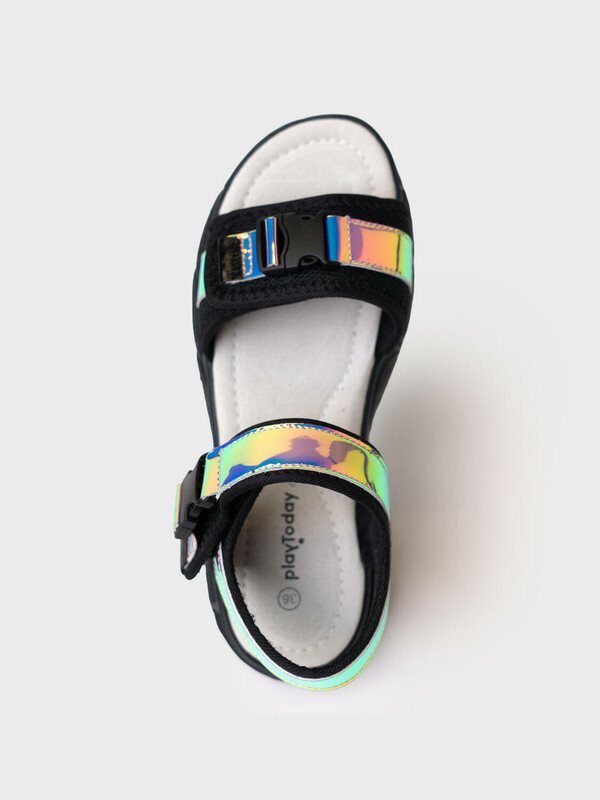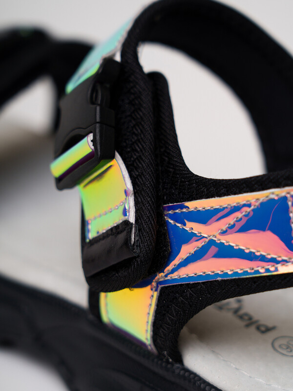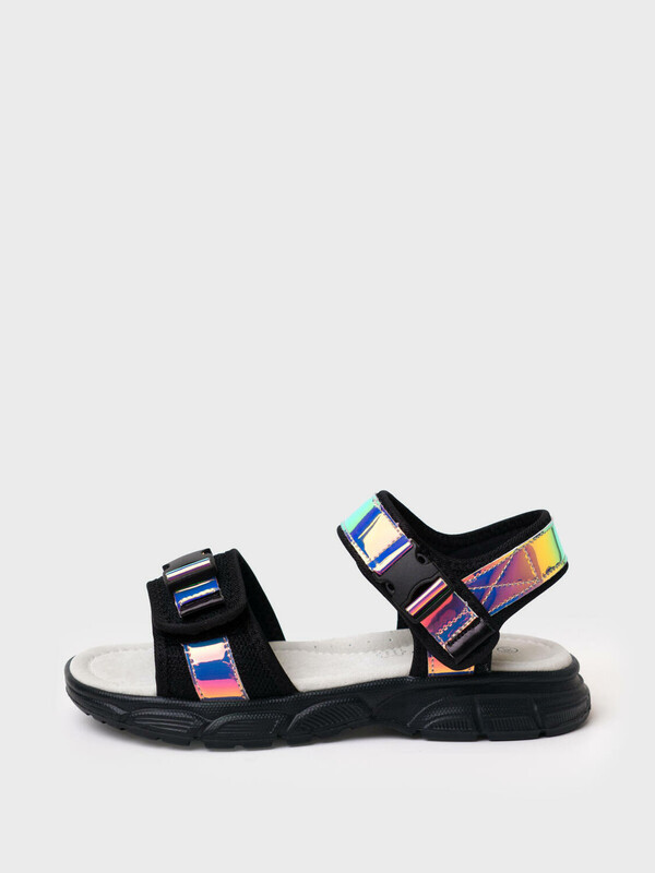 Сандалии спортивного стиля для девочки подростка. Босоножки выполнены из дышащего текстиля и зеркальной искусственной кожи. Удобные ремни с липучками позволяют регулировать обувь на любой подъем. Текстильная подкладка c высоким содержанием хлопка 80% обладает высокой гигроскопичностью. Стелька из натуральной кожи с анатомическим элементом поддерживает свод стопы в правильном положении. Модель имеет гибкую и легкую подошва из ТПР с противоскользящим протектором.